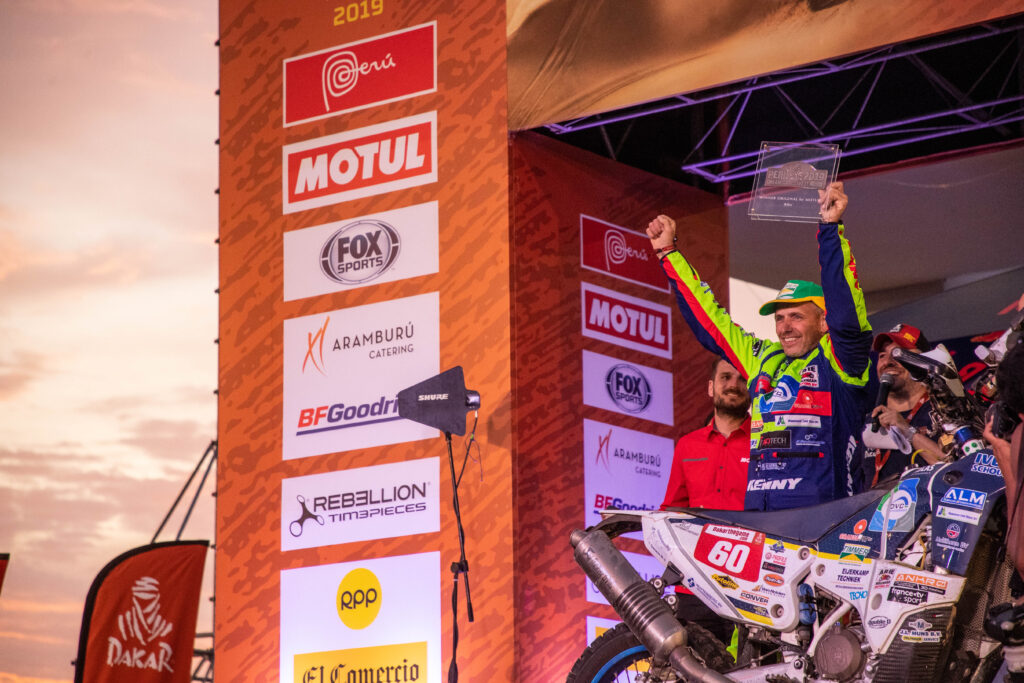 De editie van Dakar 2019 vond deze keer plaats in alleen Peru met de start op 6 januari en de finish op 17 januari in Lima. Ook dit jaar was mijn doel uiteraard finishen, maar ook hoopte ik op een verbetering van mijn eindklassering ten opzichte van vorig jaar. Dat is gelukt, en hoe… Ik kwam als winnaar van het Motul by Original klassement (beter bekend als het kistrijders-klassement) over de finish!